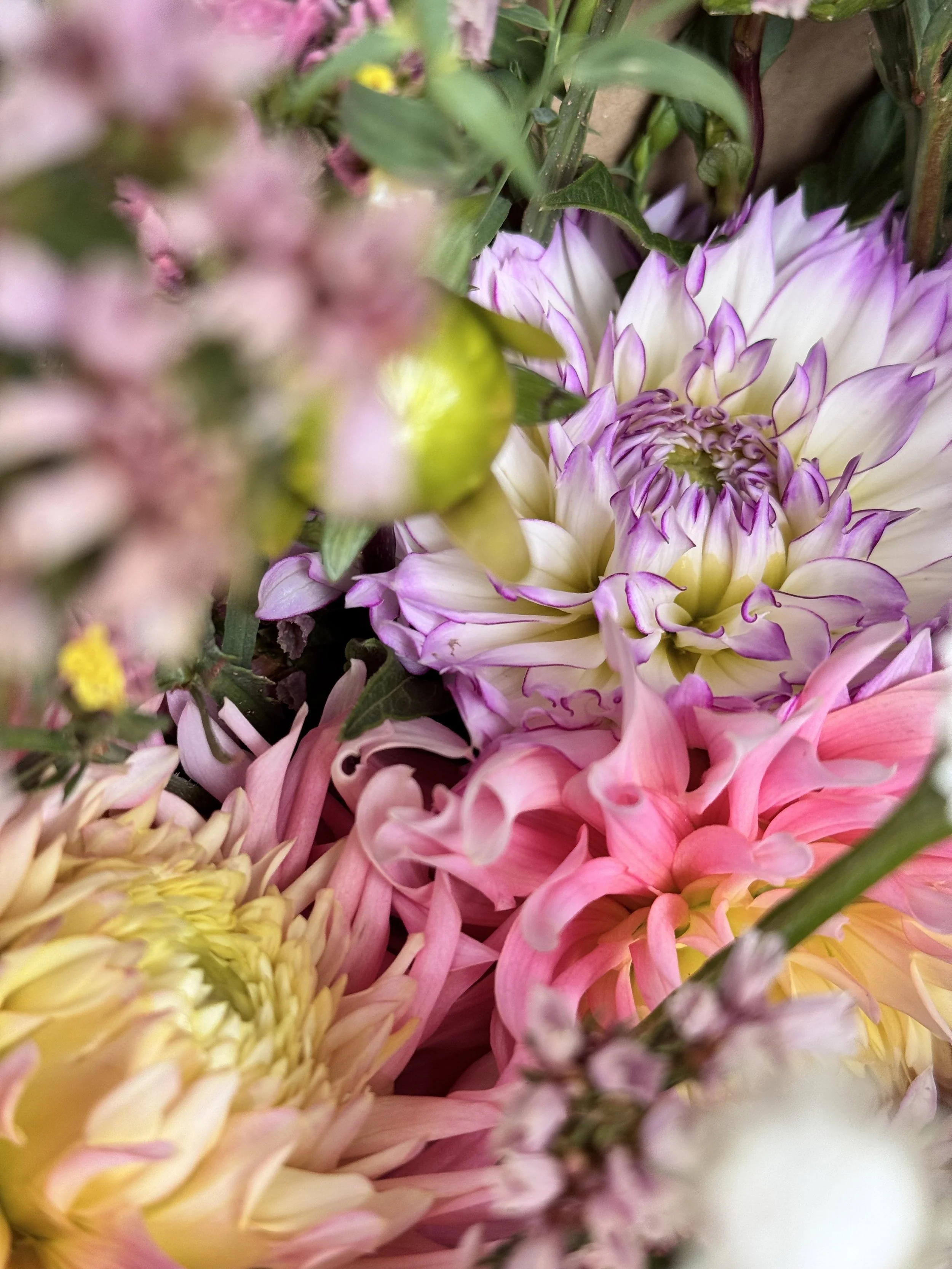 Unlike most flower farms, no foliage or greenery is grown — smaller accent flowers like chamomile, schizanthus, and cornflowers are used to create bouquets that are beautifully “flower-rich” and full of charm.