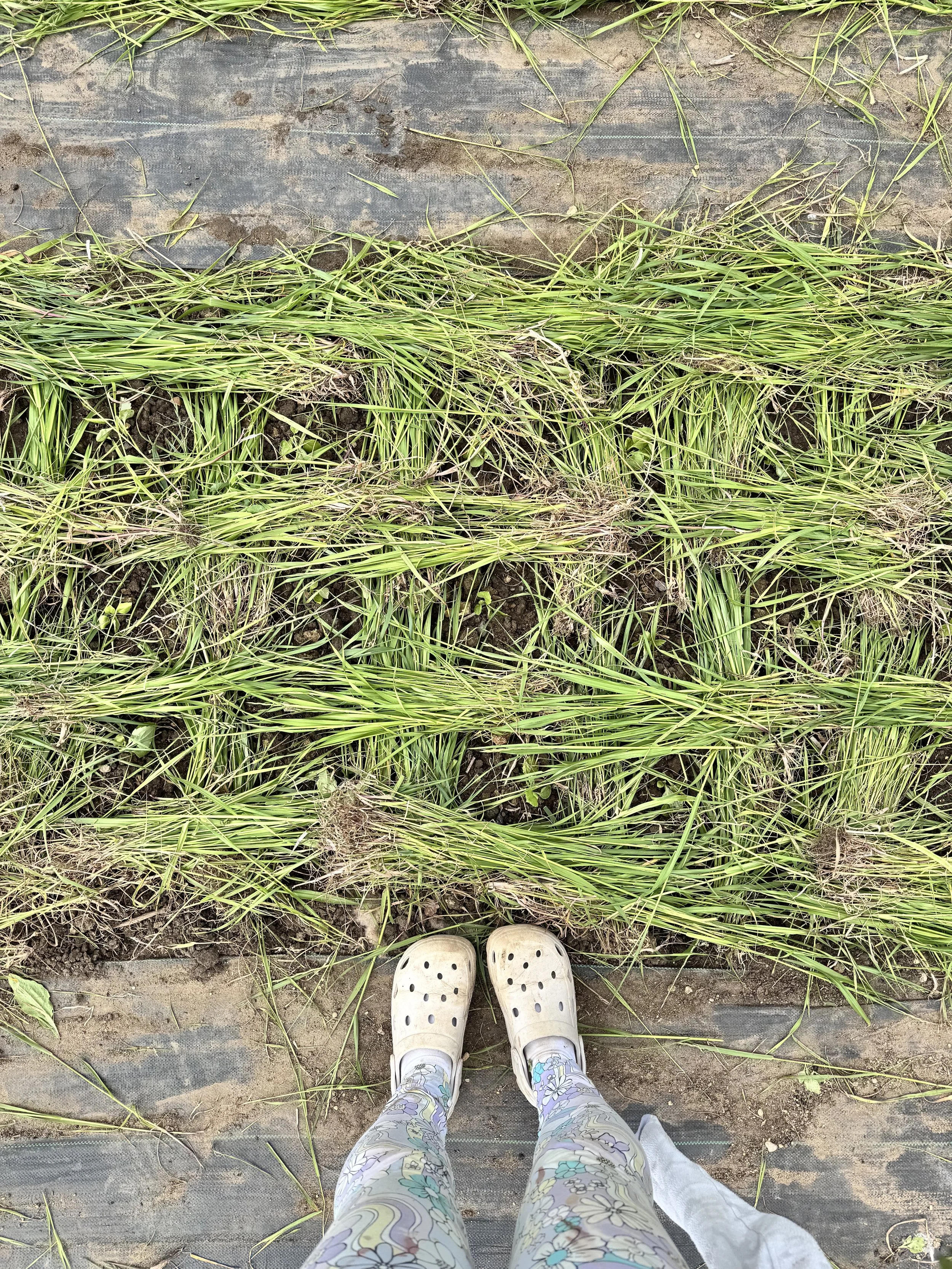 I cut it. I hoed it. I tried digging it out. And yet… rye shoots continue to appear everywhere, even now. Months later.