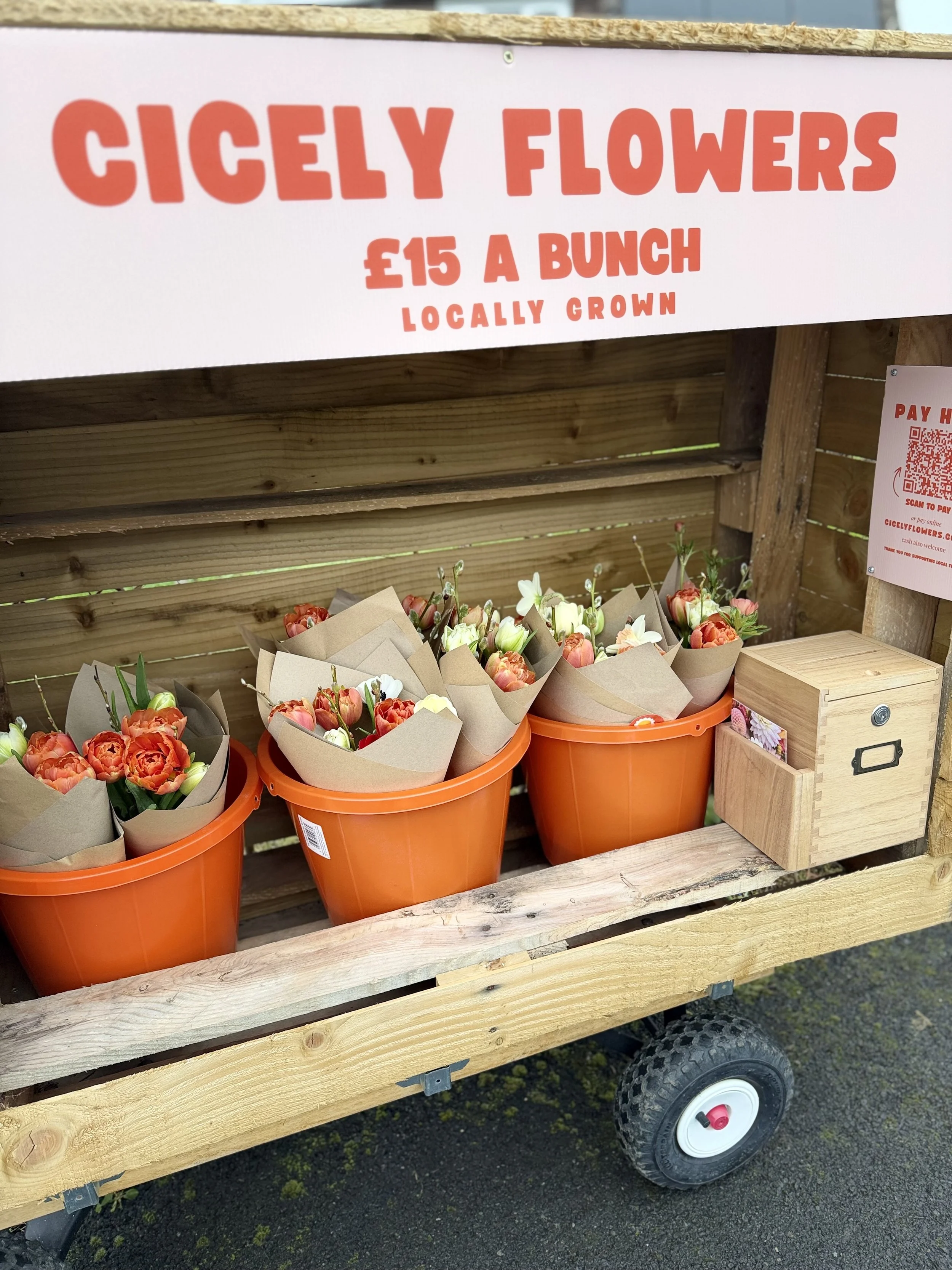 In the early days, my flower stand was literally a table in my front garden, carefully arranged with a handful of seasonal blooms. It was only meant to be a temporary measure - a way to sell flowers while I still had a preschooler and toddler at home. I quickly learned that flowers are delicate, that customers love choice, and that presentation really matters. Some days the table was overflowing, other days barely a stem - but every bouquet had care and attention behind it.