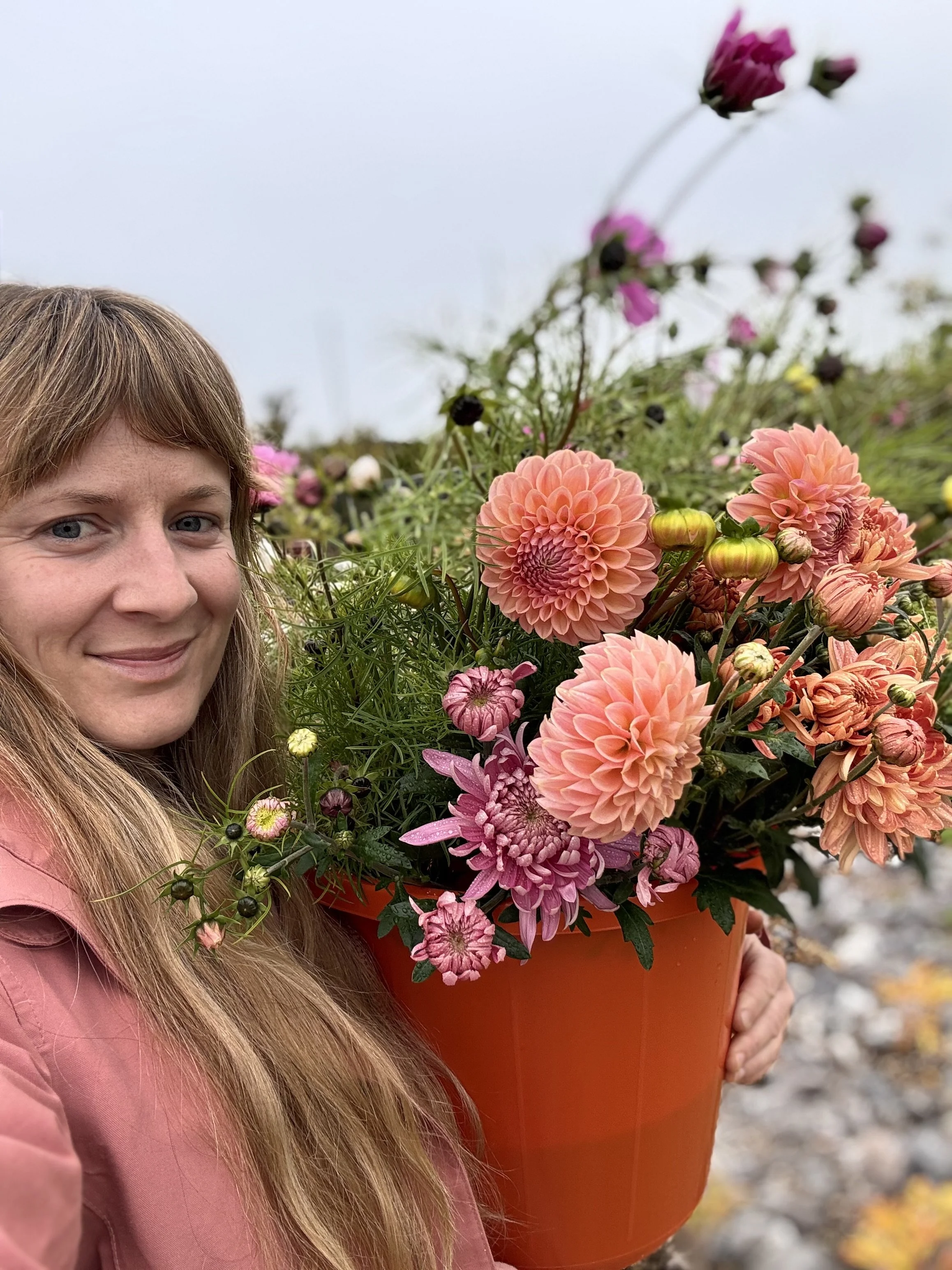 Unlike most flower farms, no foliage or greenery is grown — smaller accent flowers like chamomile, schizanthus, and cornflowers are used to create bouquets that are beautifully “flower-rich” and full of charm.